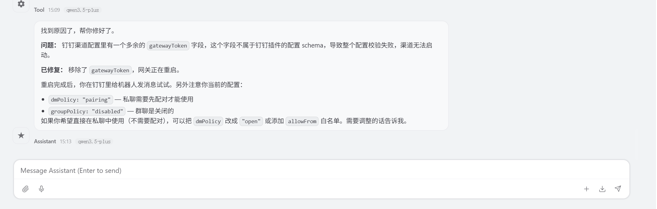 完成所有配置并通过钉钉端的消息测试后,即可实现 OpenClaw 与钉钉的稳定联动。后续若遇到连接异常、消息无响应等问题,可通过查看 OpenClaw 网关日志或检查钉钉应用权限配置进行排查。用户也可根据实际需求,调整消息类型、安全策略等参数,进一步优化使用体验。